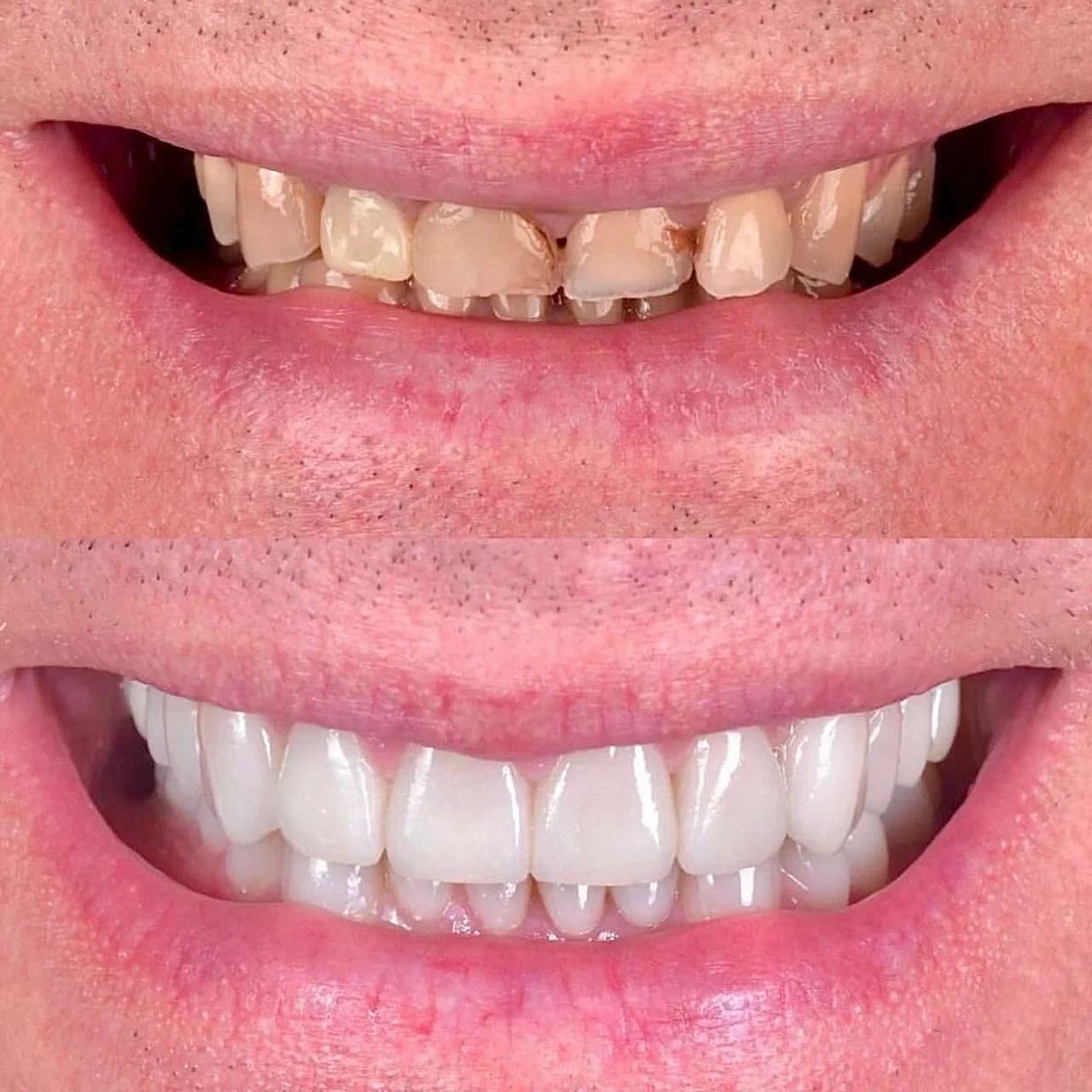 В нашей практике немало случаев, когда даже винир на 1 зуб значительно улучшал эстетику улыбки. В нашем центре максимально можно установить 16 накладок – по 8 в верхнем и нижнем зубном ряду.